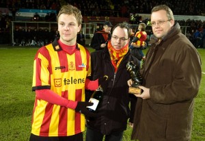 dinsdag 2 februari 2010: Vóór de match tegen GBA kreeg Julien Gorius de trofee voor meest verdienstelijke speler van het jaar 2009 uit handen van de Federatiebestuursleden Geert Wouters en Mark Van de Casteele.