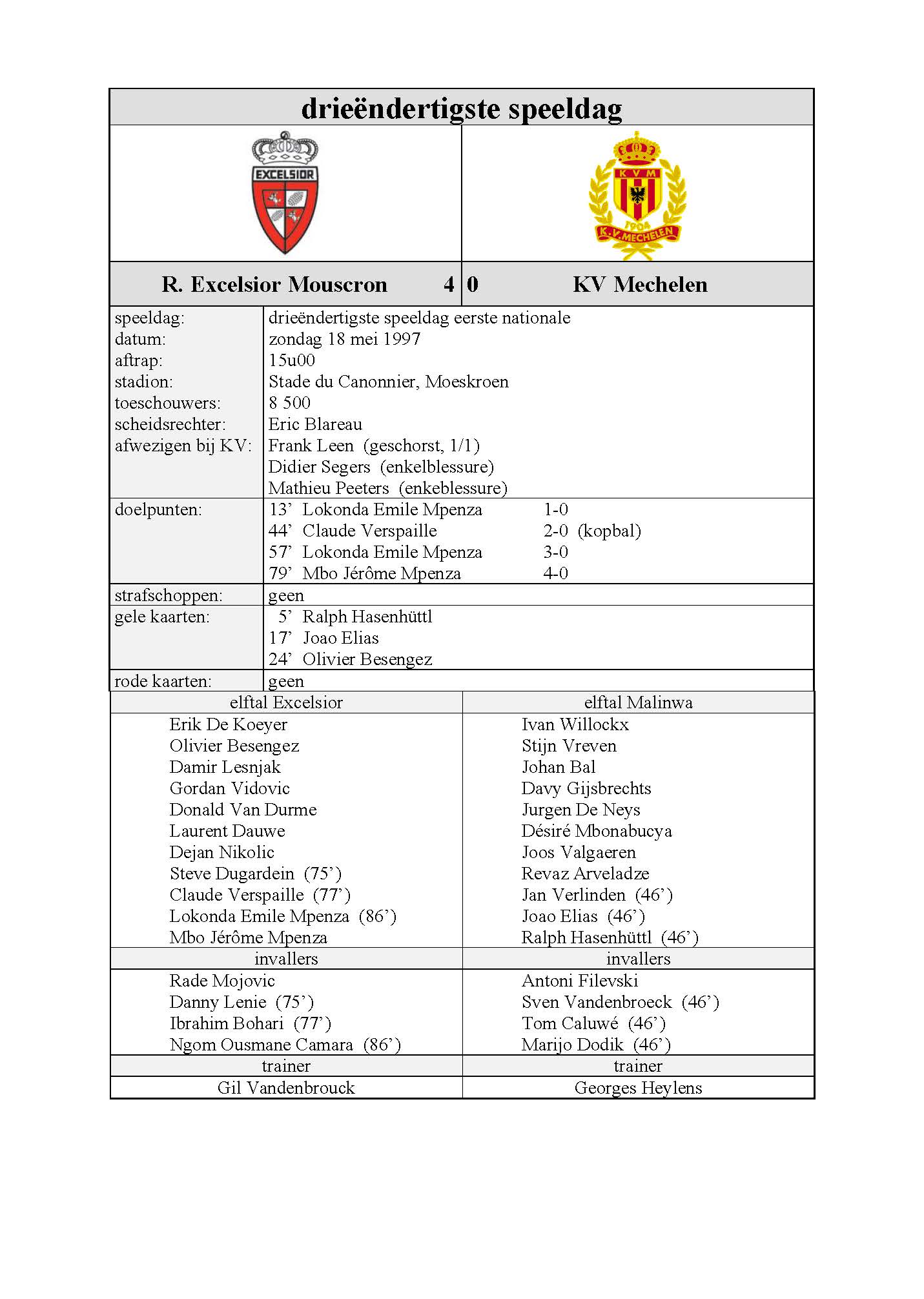 18-05-1997 R. Excelsior Mouscron – KV Mechelen 4-0