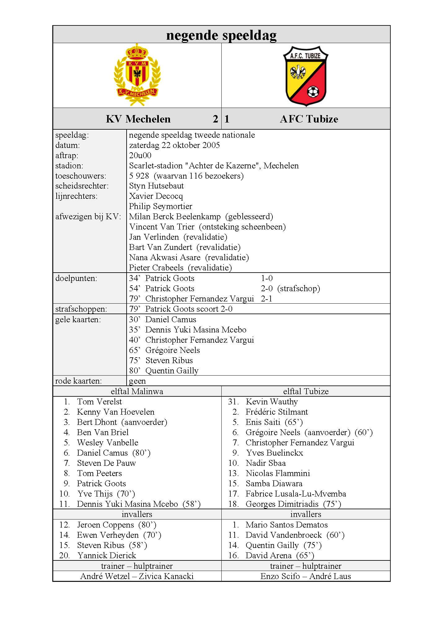 22-10-2005 KV Mechelen – AFC Tubize 2-1