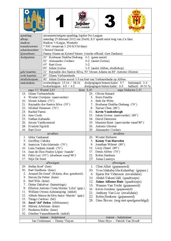 25-02-2012 KVC Westerlo – KV Mechelen 1-3