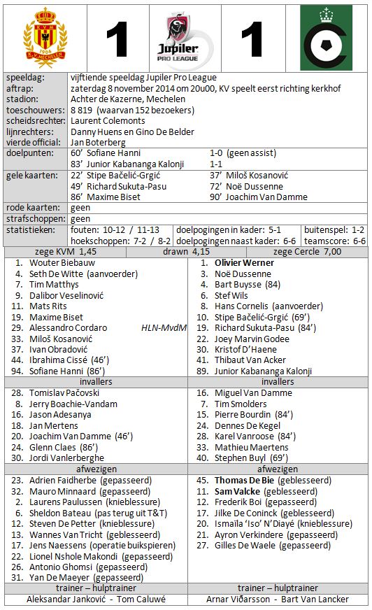 08-11-2014 KV Mechelen – Cercle Brugge KSV 1-1