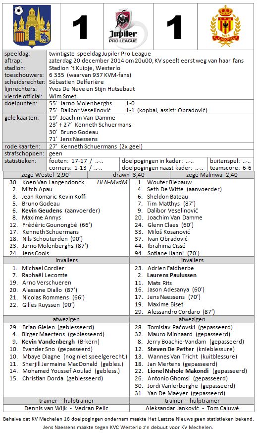 20-12-2014 KVC Westerlo – KV Mechelen 1-1