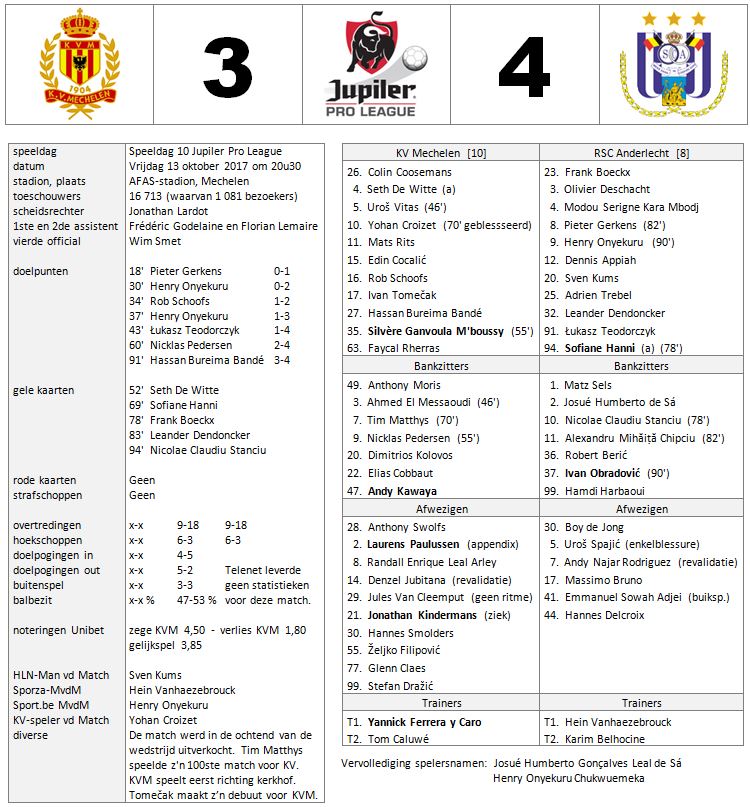 13-10-2017 KV Mechelen – RSC Anderlecht 3-4