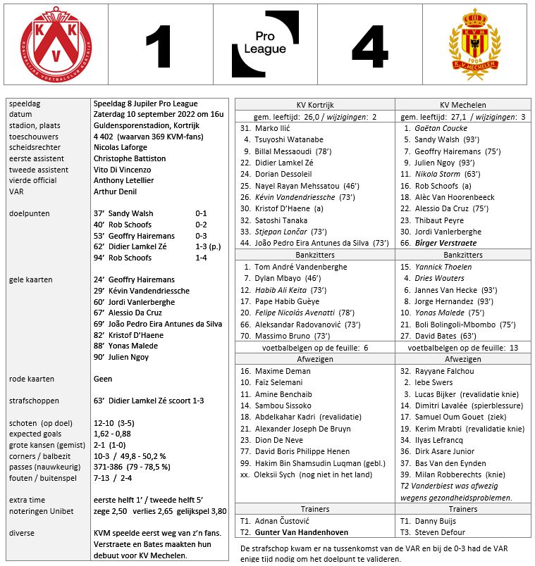 10-09-2022 KV Kortrijk – KV Mechelen 1-4