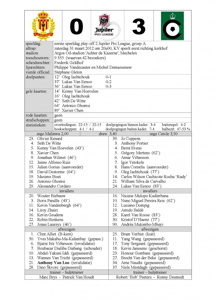 31-03-2012 KV Mechelen – Cercle Brugge KSV 0-3