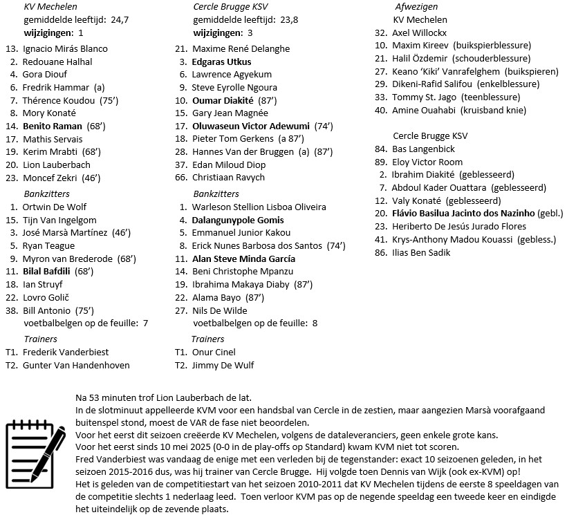 21-09-2025 KVM – Cercle Brugge KSV 0-0